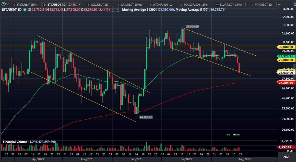 Depois de alertar algumas vezes sobre a região de consolidação entre os U$29-30 mil para o Bitcoin, parece que se chegou a uma definição, com o ativo perdendo a faixa inferior dessa zona de preços nos dois últimos dias.