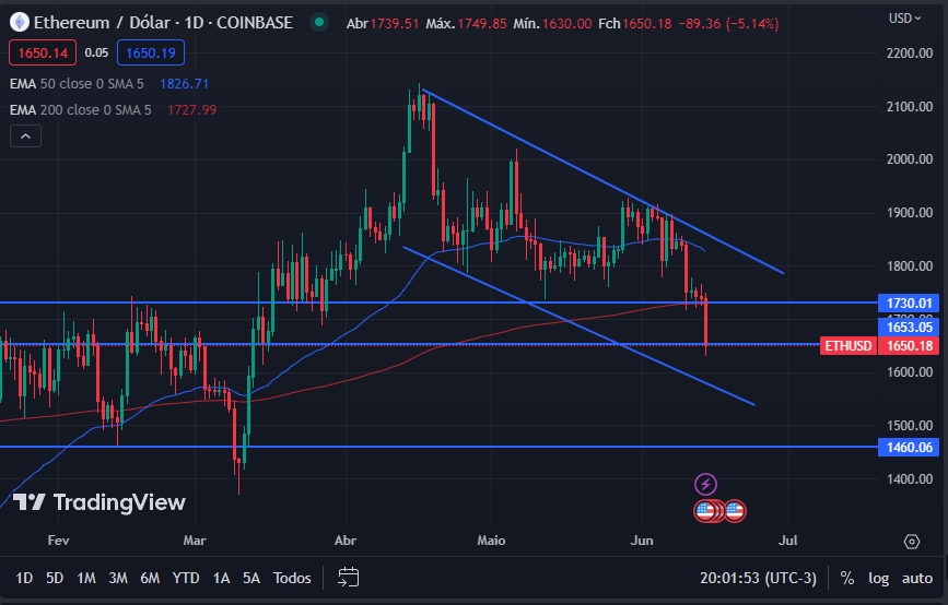 No caso do ETH, o movimento foi mais severo, abrindo espaço para o ativo caminhar para a região de preços de U$1.500-1.600. Na ponta altista, vale ficar de olho nos U$1.750 como possível resistência.