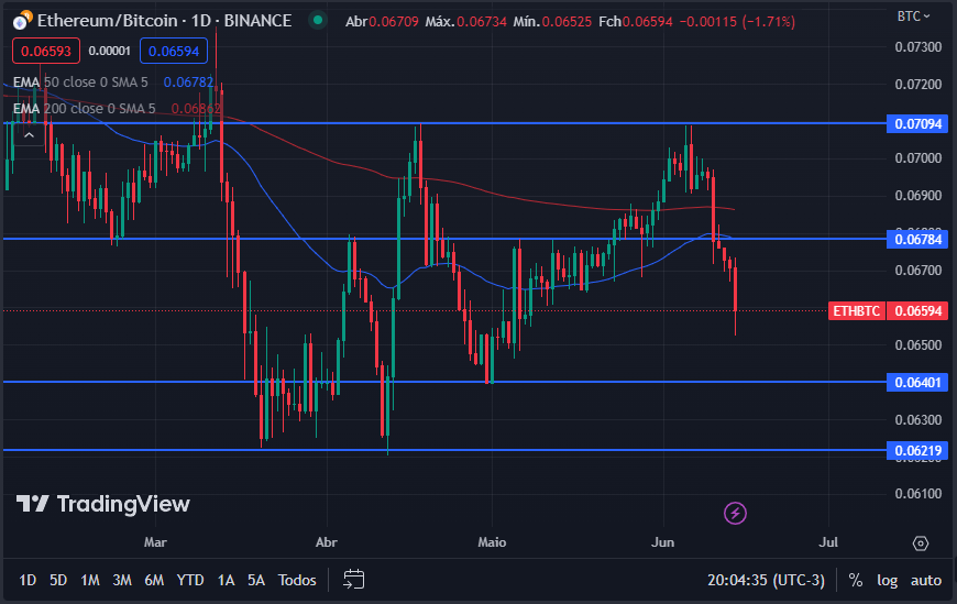 Independentemente do motivo, o BTC perdeu um nível de preços importante, e negocia abaixo da EMA de 200 períodos.