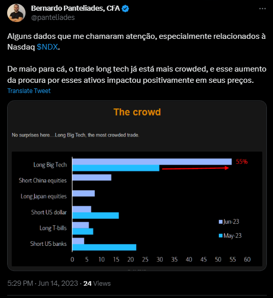 A novidade da análise técnica de hoje fica por conta da Nasdaq (NDX), que é sem dúvidas, um dos principais destaques positivos do ano, acumulando valorização de ~36%.