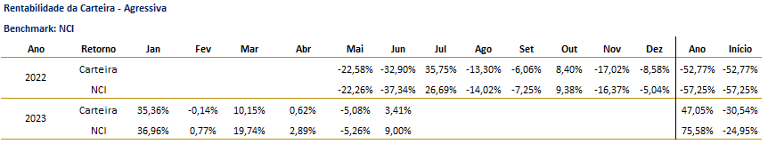 Por fim, a carteira agressiva rendeu +3,41% no período.